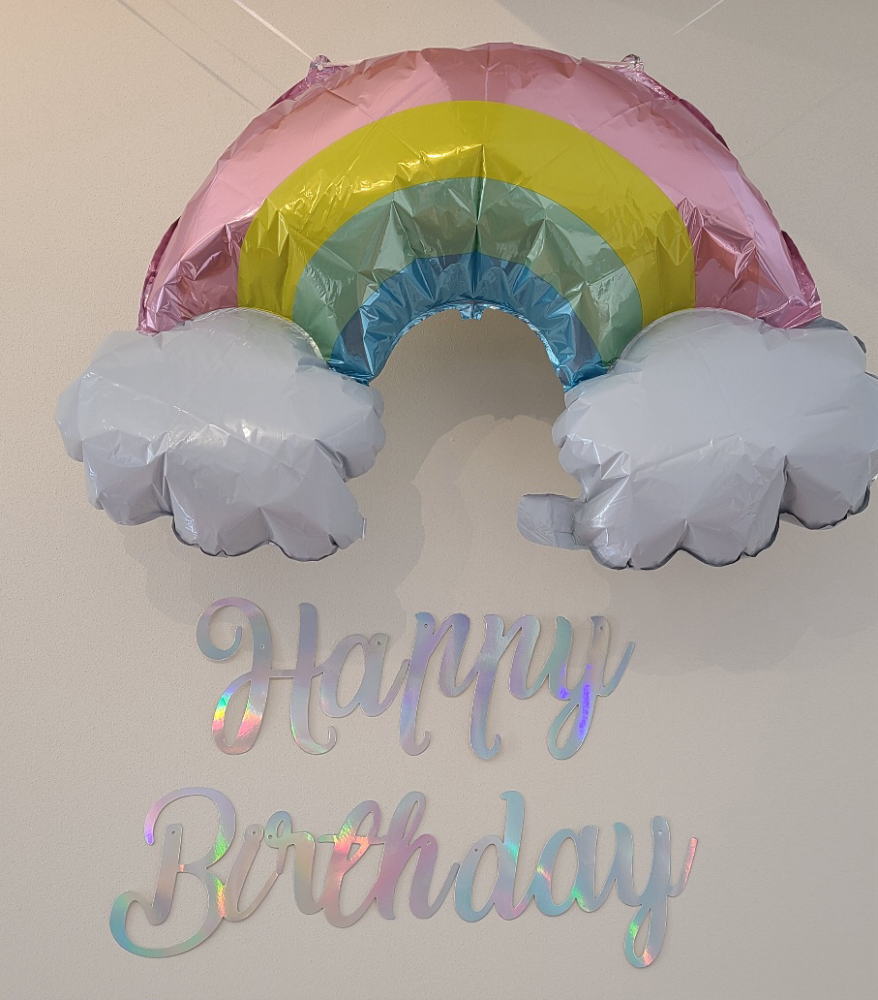 昨日はお姉ちゃんのKちゃんのお誕生日で、親戚も大勢集まってパーティーを楽しんだということで、お部屋にはお祝いのバルーンが飾ってありました♪