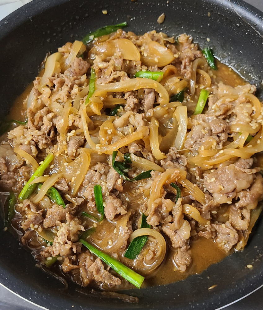 さて、写真は今日の我が家の晩御飯のメイン「牛肉と玉ねぎの和風スタミナ炒め」