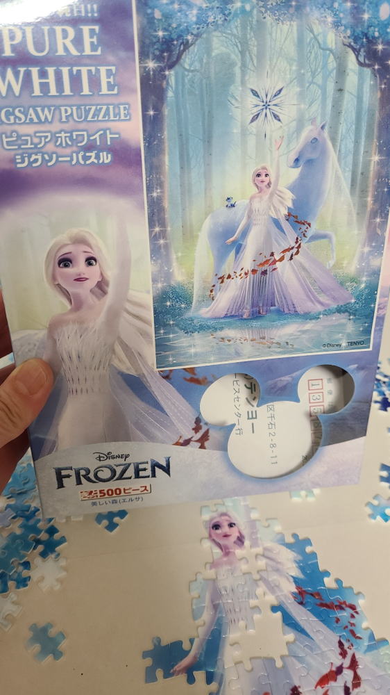 さてさて…今日の写真は、せっかく新しいパズルを買ったのにやる時間がなくて止まっているというところ。