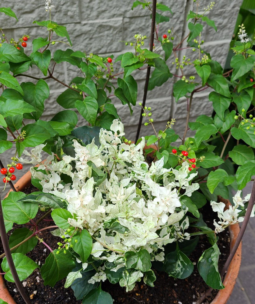 さて、玄関の鉢植えの花は迷いに迷いましたが、一番最初に気になった「ジュズサンゴ」に決定!!