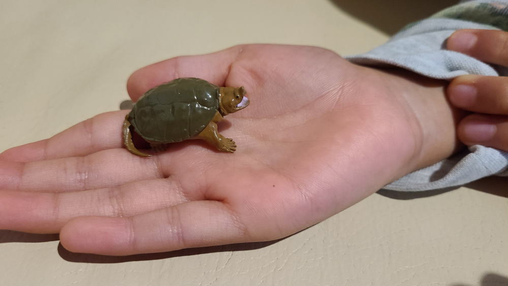 写真は朝お兄ちゃんのKくんが見せてくれたミニ亀フィギュア。