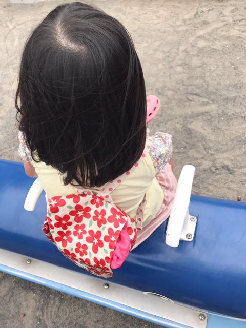 沢山拾ったら少し遊具で遊んで帰りました。そのままお家に入るのかと思いきや…時折聞こえてくる近所のお友達の声が気になるようでお家の周りを1周したいとのこと。
