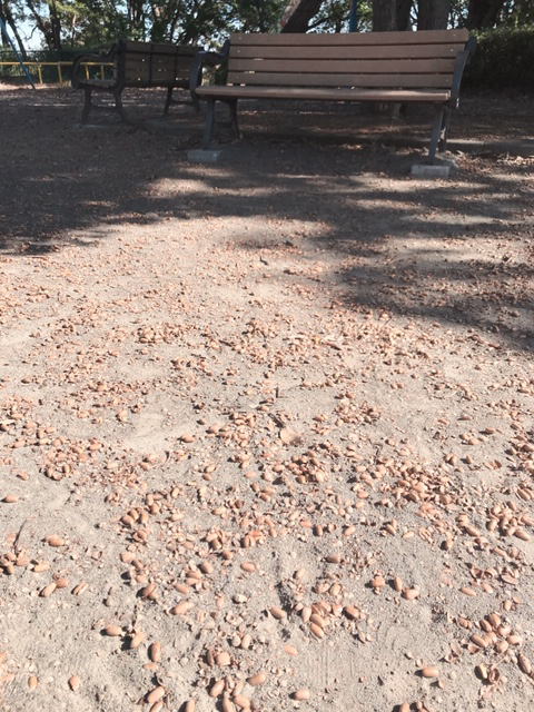 写真はいつもの公園。よく見ると木の下はドングリだらけ‼︎こんなに沢山のドングリは久しぶりに見たかも⁈です。ここは、ドングリ拾いを始めたら永遠に終わらない場所だということが分かりました。。。