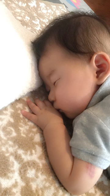 Sちゃんのお顔がふっくらして、また違った印象になりました。「ママに抱っこしてもらいたい〜」と泣いている時に私が抱っこすると、泣き止むことは泣き止むのですが、そこからグッスリ眠るという感じにはなりませんね。
