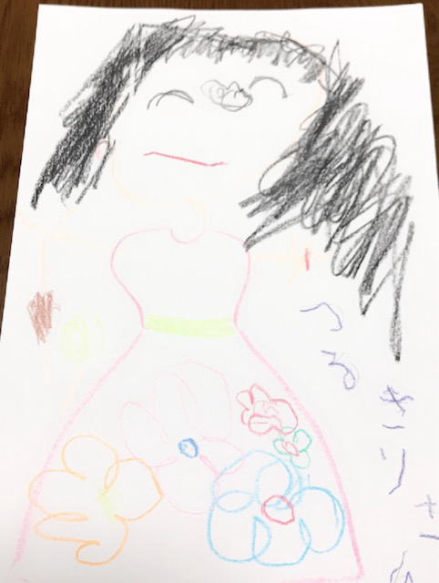 写真は先日書いてくれた私の似顔絵です。髪の毛の感じがMちゃんのイメージ通りですね♡