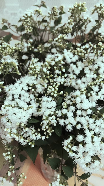 写真の花はユーパトリウムチョコレート。茎や葉っぱの裏が茶色でチョコレート色です。小さな苗を植えたのですが、いつのまにか大きな株になり毎年可愛い花を咲かせてくれます!