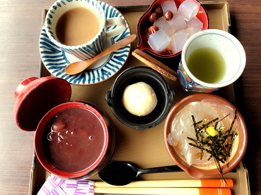 今日の写真は先日行った横浜三渓園のお茶屋さんの甘味セット。その名も「おままごと」