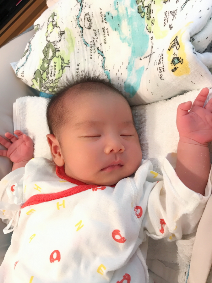 写真は沐浴後にお腹いっぱいになりスヤスヤと気持ち良さそうなYくん。赤が似合います◎