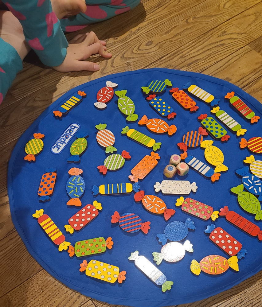 真ん中のNちゃんはすみっコぐらしの毛糸の編み機をもらっていました。今日はコースター作りに挑戦。上手に出来上がっていました♪